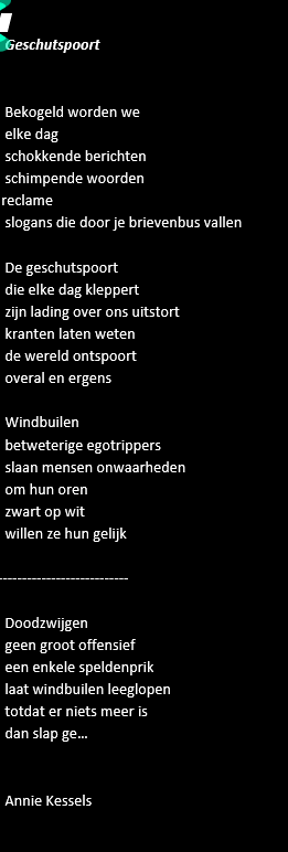 Dit knap gedicht van onze Annie lijkt ze met een voorspellende blik te hebben geschreven! Vervang het woord “geschutspoort” maar door “social media”…